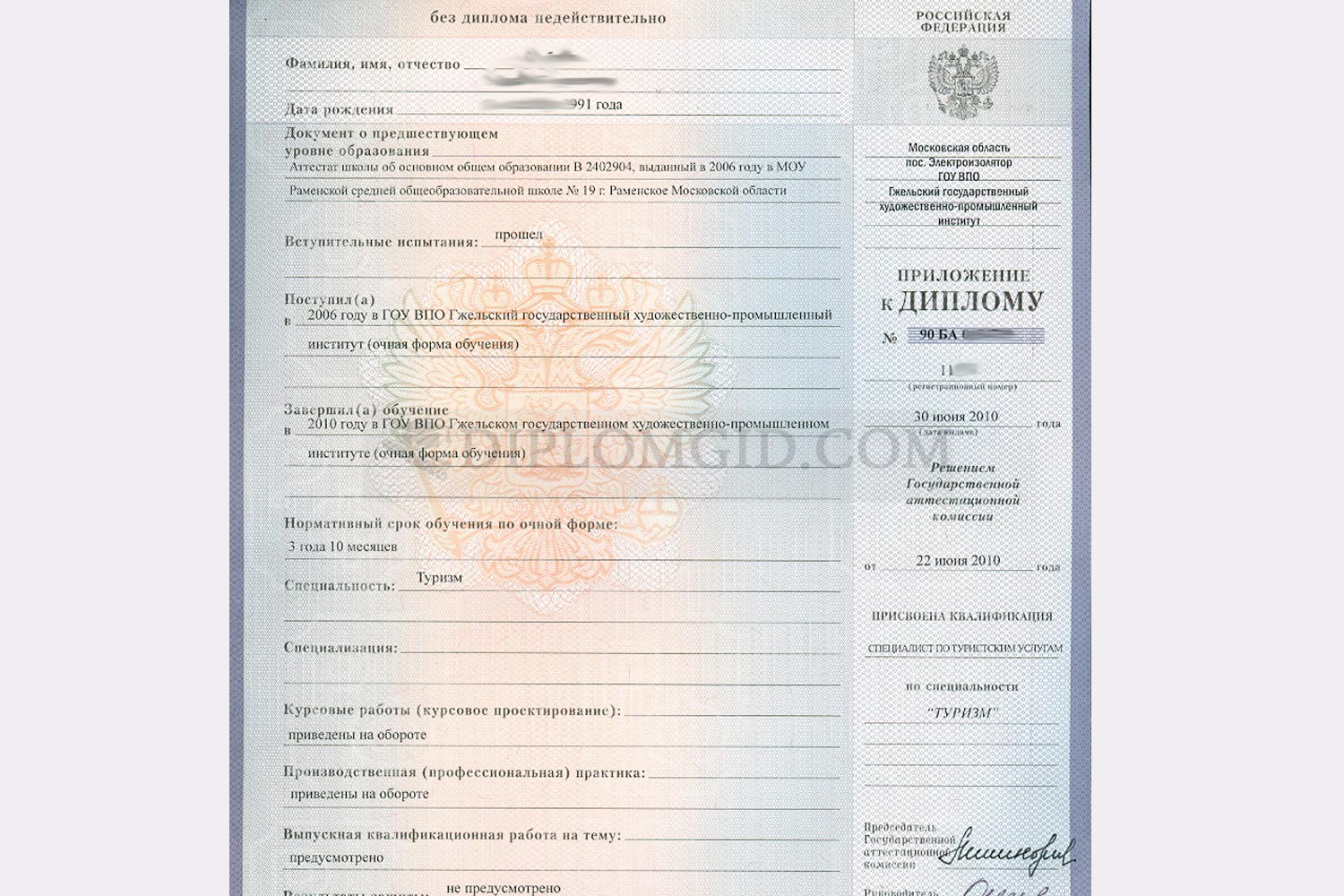 Диплом о среднем образовании 2007-2010 годов